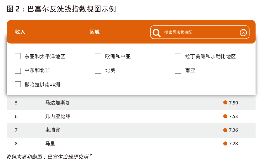 - 搜索巴塞尔反洗钱指数考虑的国家,1 如图 2 所示
