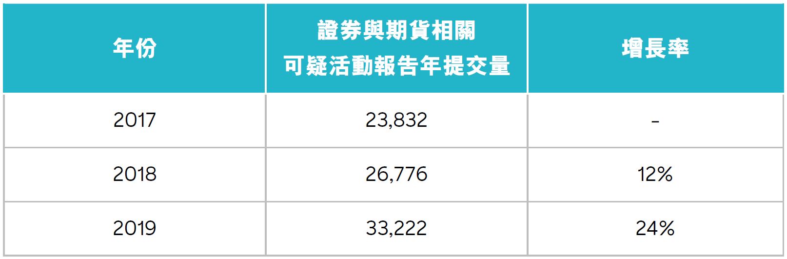 表 1:證券與期貨相關可疑活動報告年提交量 5