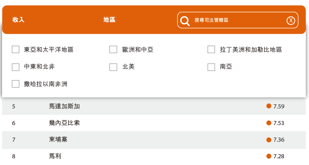 - 在巴塞爾防制洗錢指數中搜尋所考慮的國家,1 如圖 2 所示
